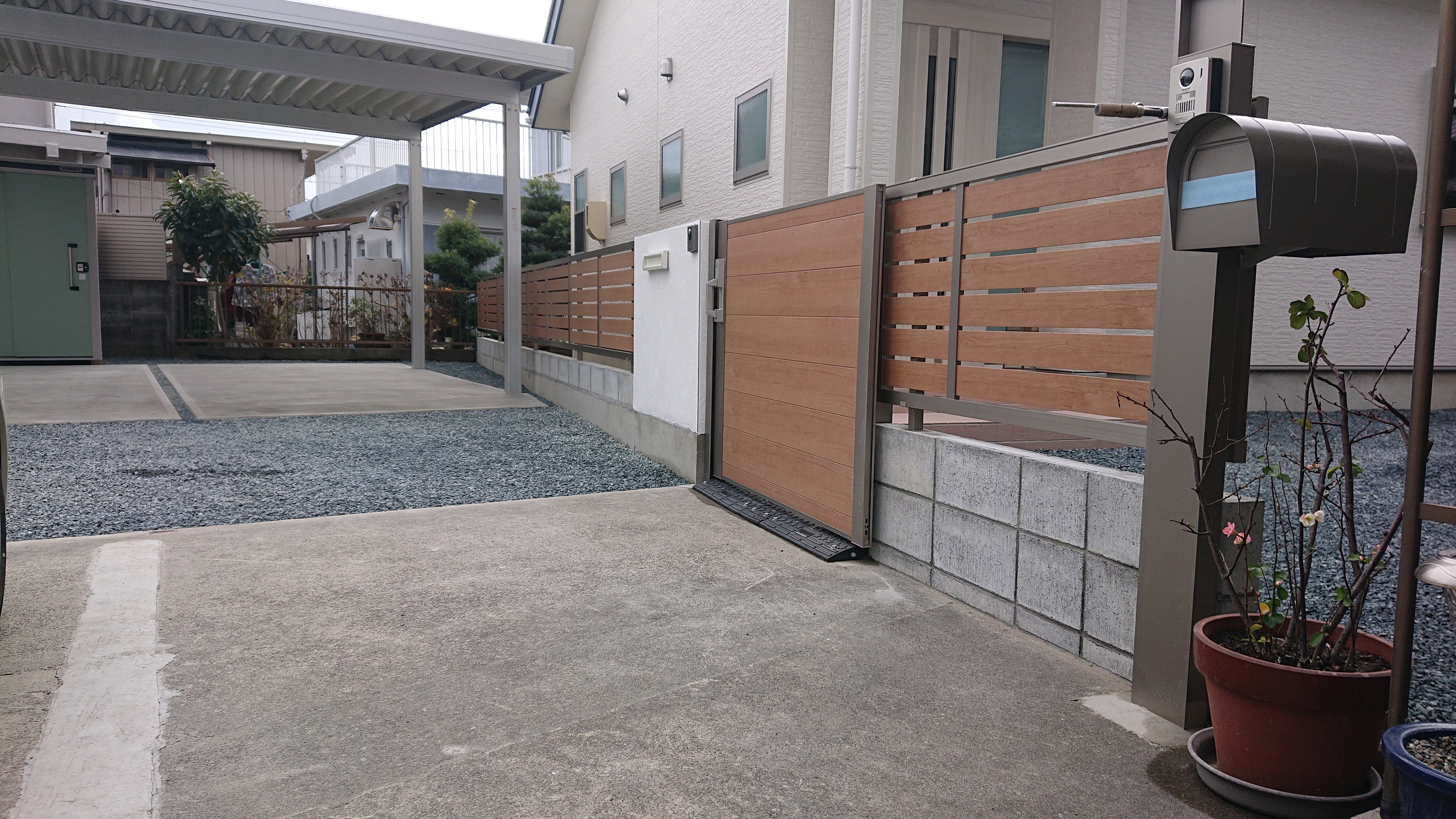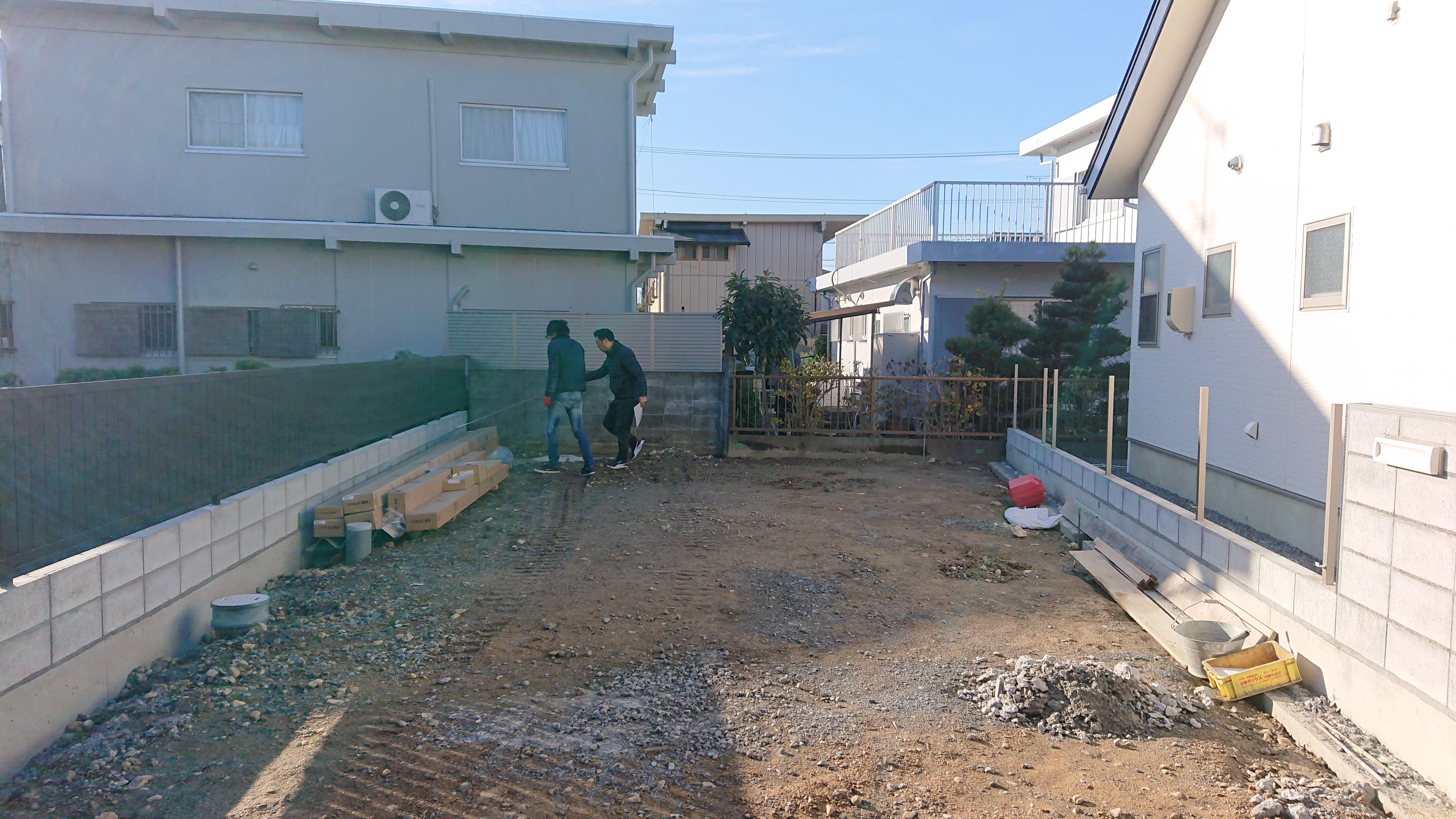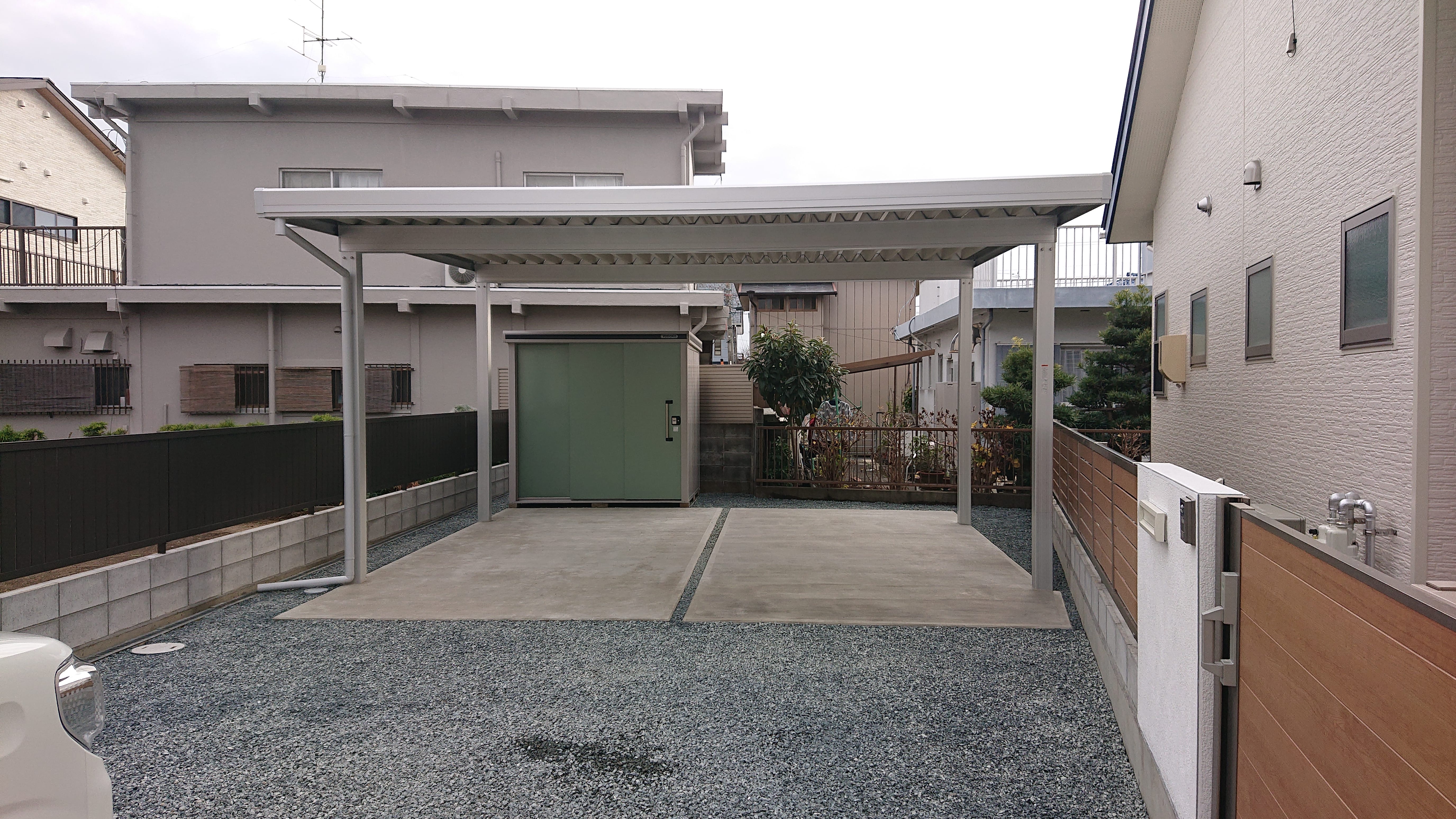 エクステリアT様邸エクステリア工事建物本体工事を9月に終え、年末から車庫と門(境)を作ります。カーポートの建て方やる前と雰囲気が変わりました。 お客様のデザインセンスが良くいい仕上がりに。門扉が付くと締まります。