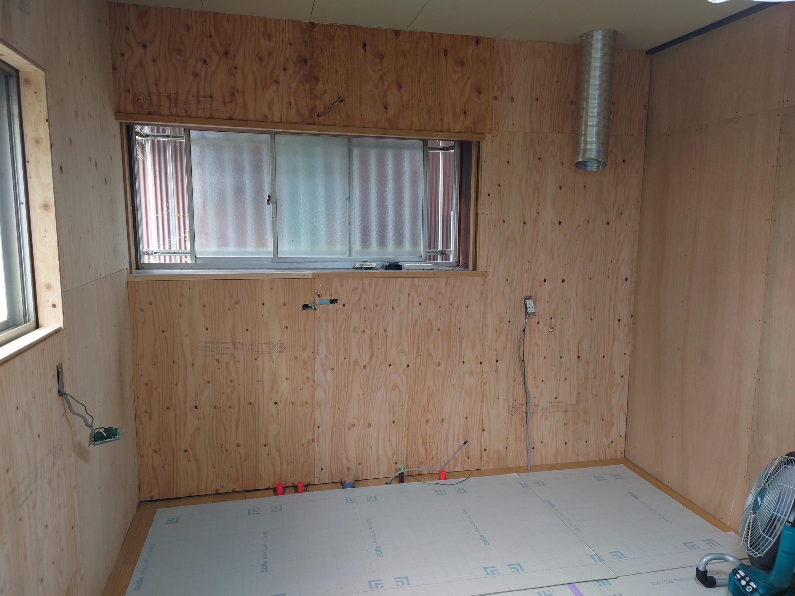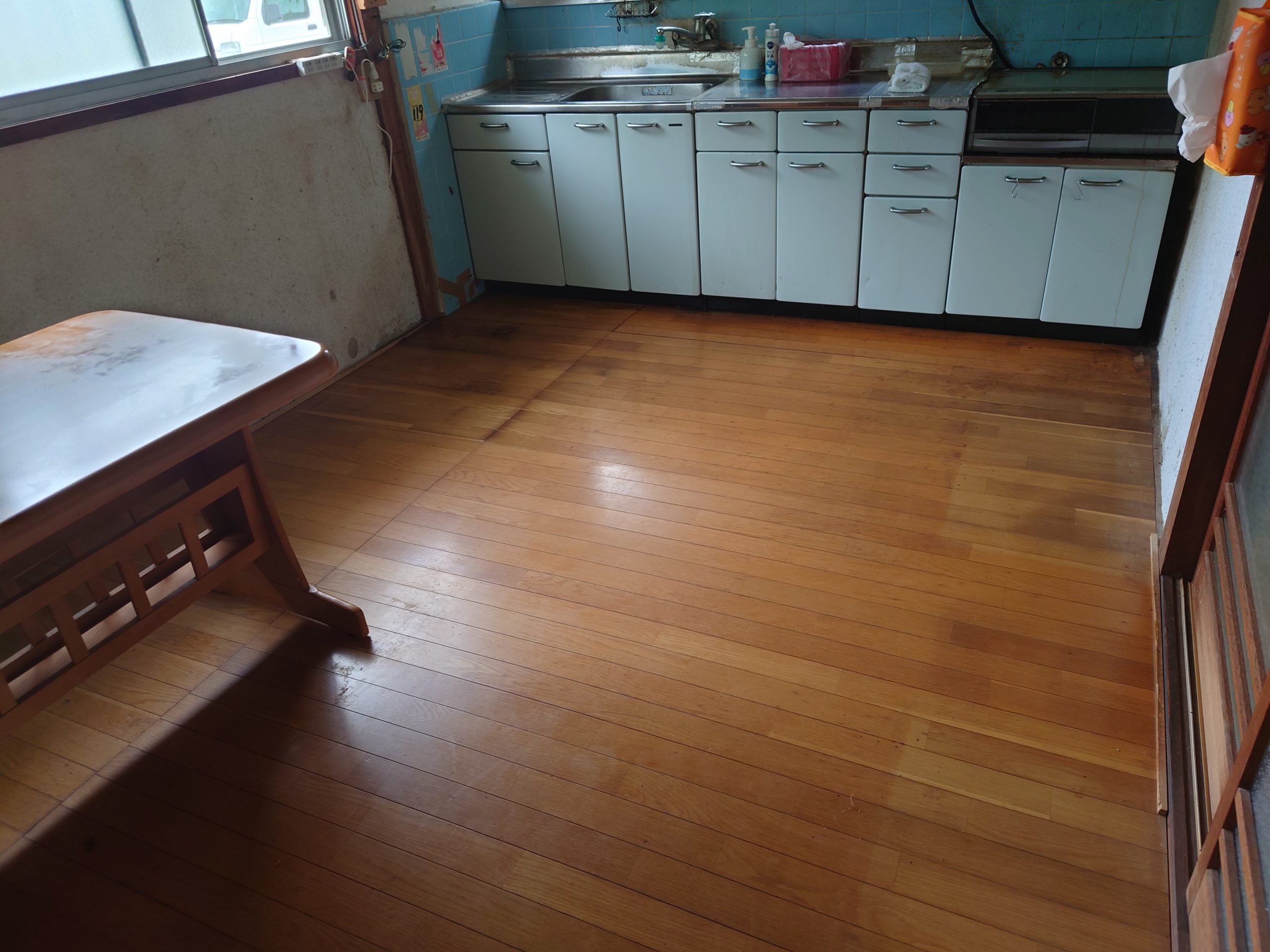 床貼工事も同時に依頼いただき、補助金を使い施工。これからキッチン組み立てます。