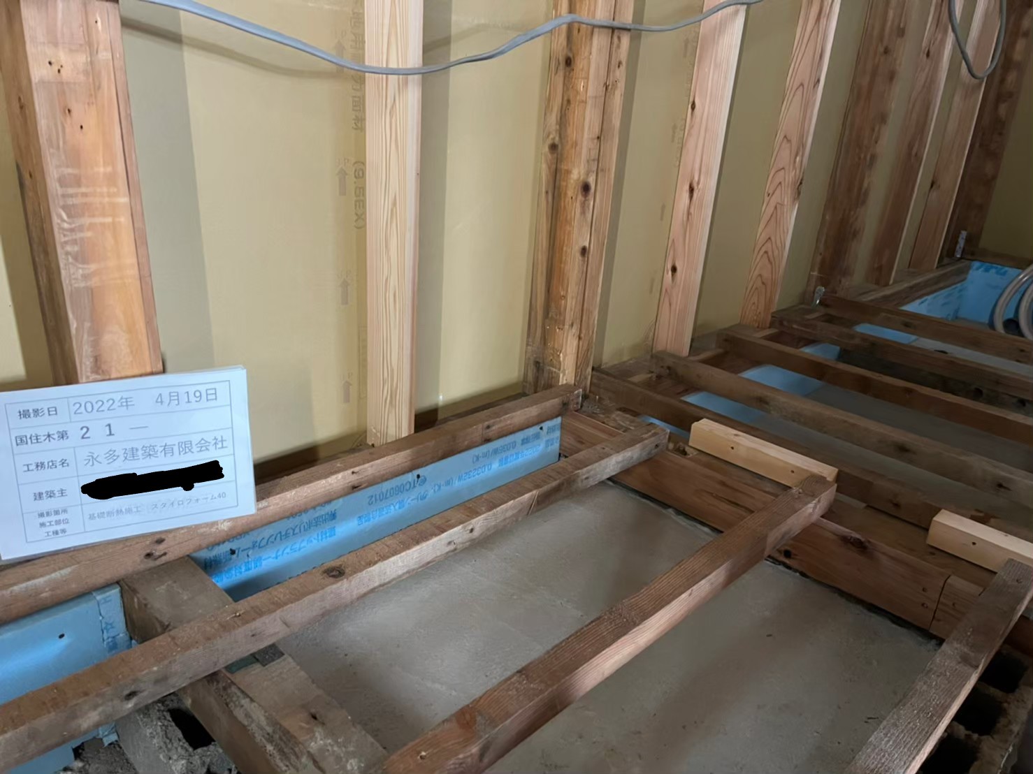 ↑ 基礎断熱を施工し、省エネ効果をアップさせます。