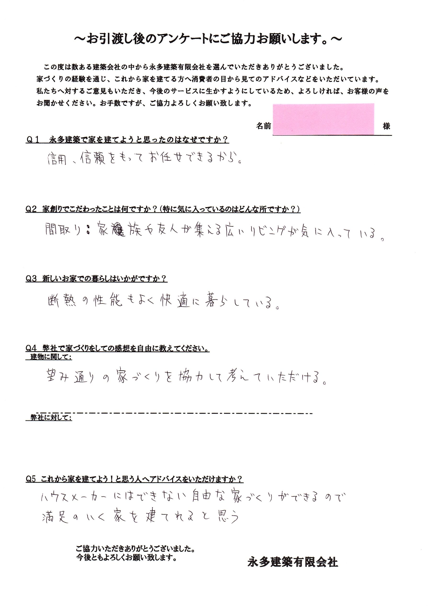 Q4 弊社で家づくりをしての感想を自由に教えてください。