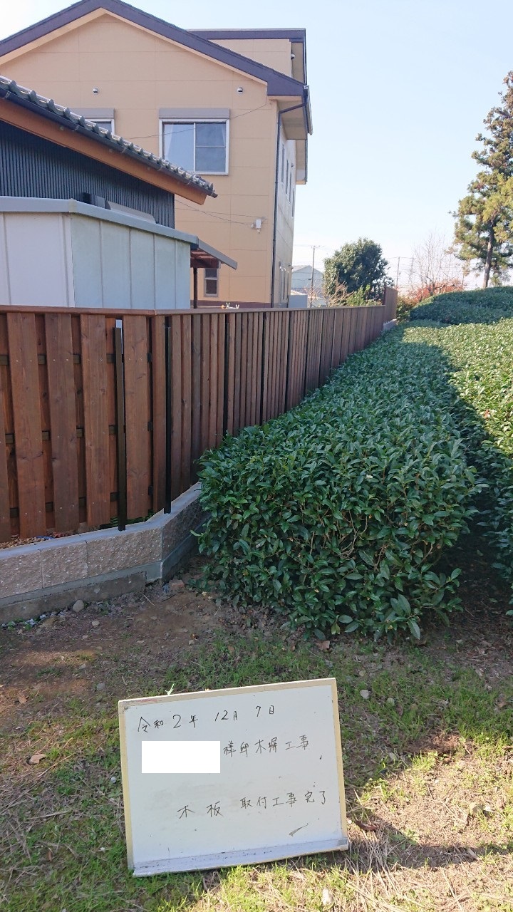 アルミフェンスなどで設置するのが多いのですが、今回木の塀で設置いたしました。