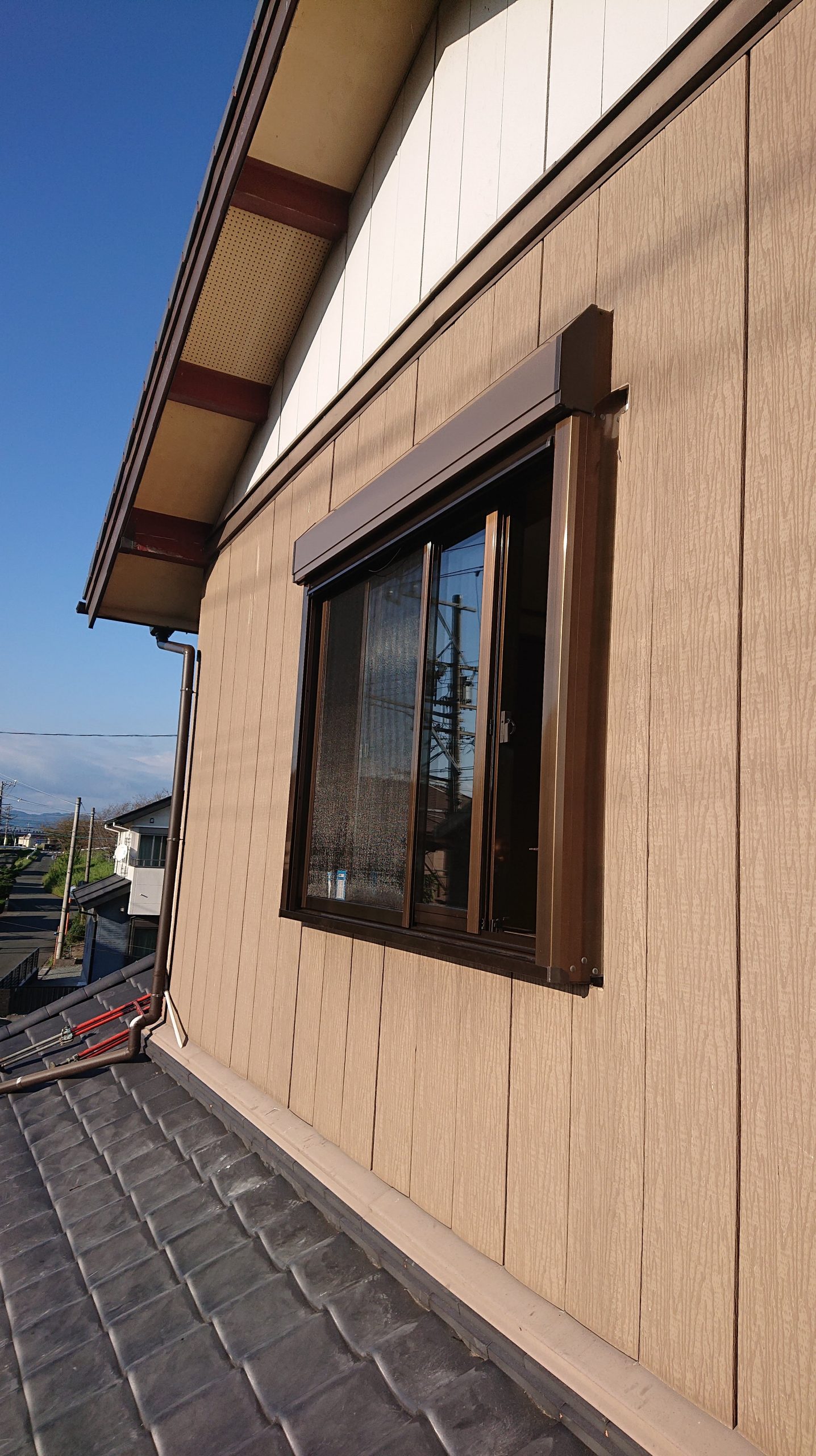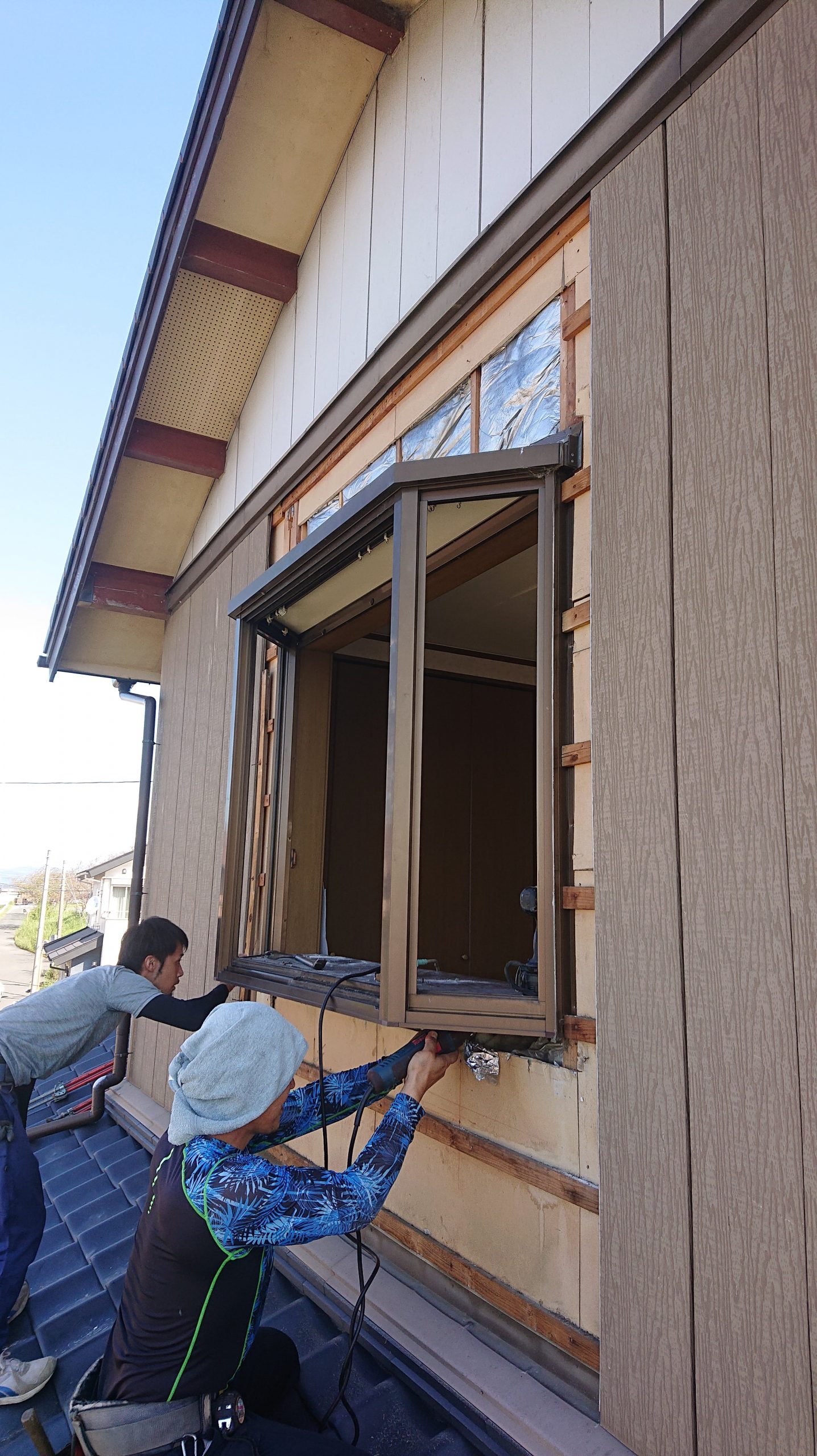 ですが、出窓は後付けでシャッター、雨戸が付けられません。 そこで窓交換工事。