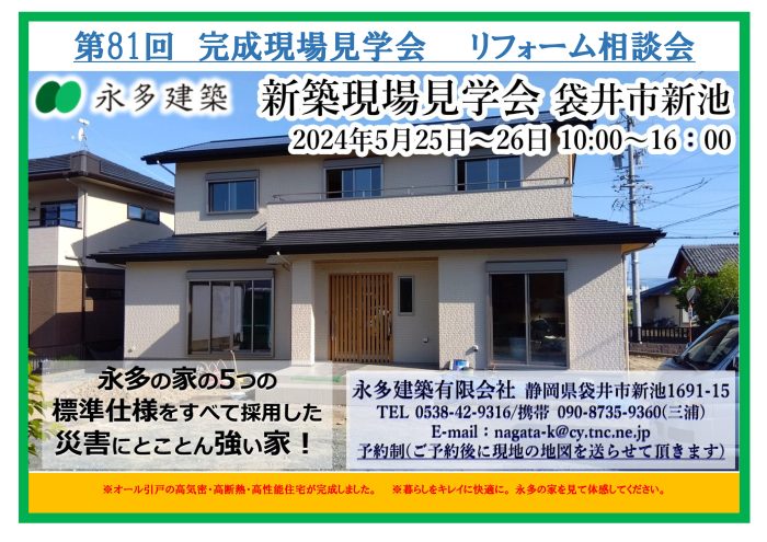 袋井市新池にて第81回 新築完成現場見学会を開催します。