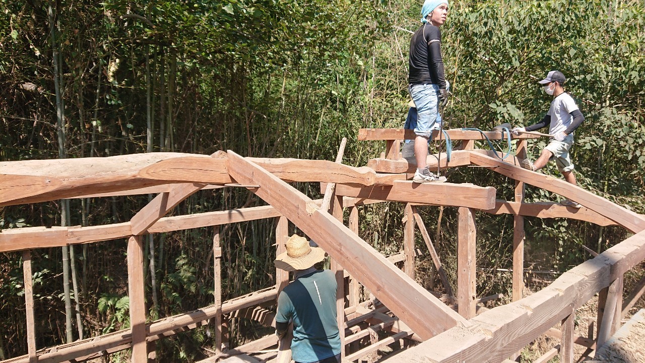 重機も入れず、手で解体するのみ。。 (;゚Д゚)