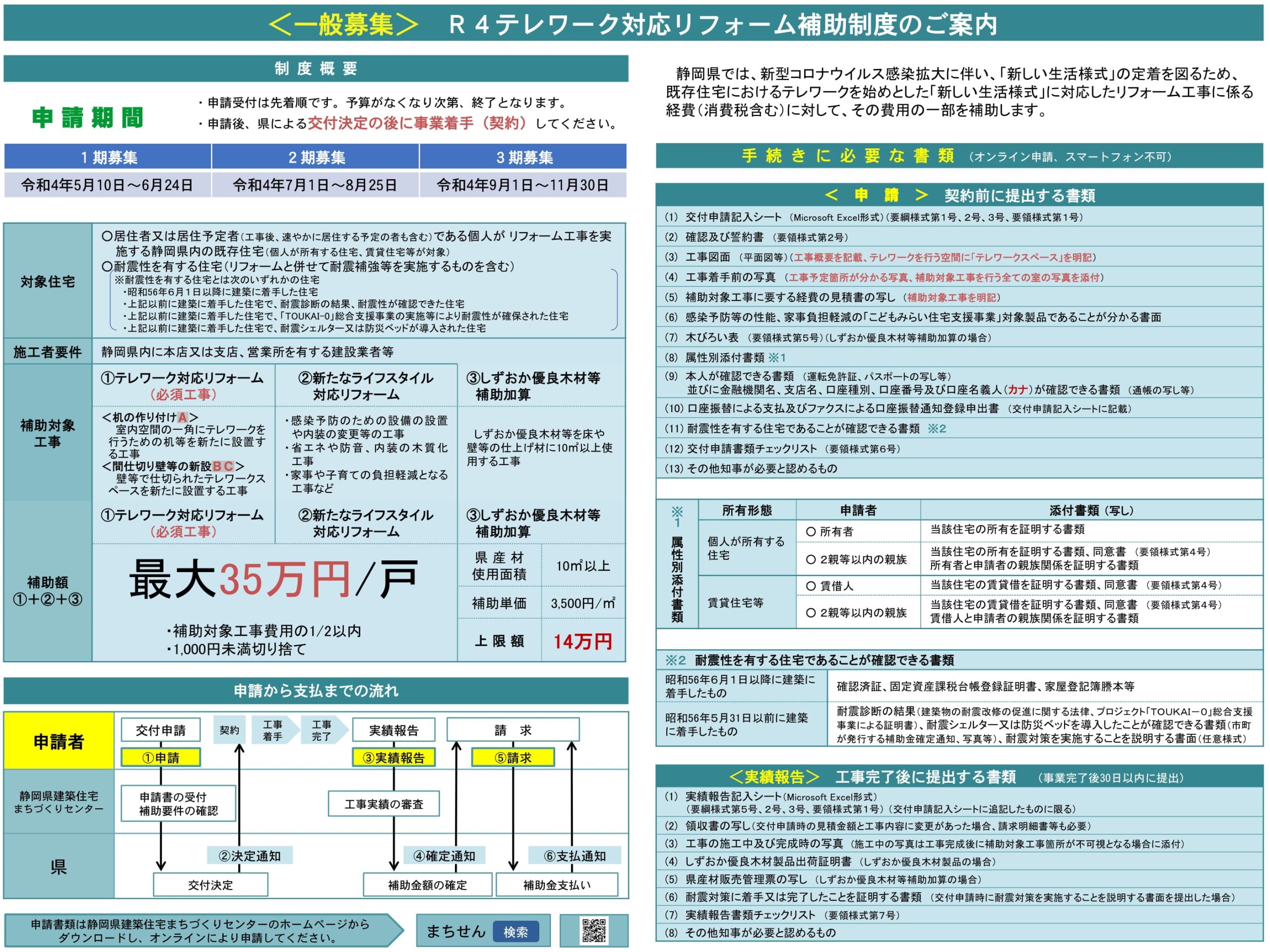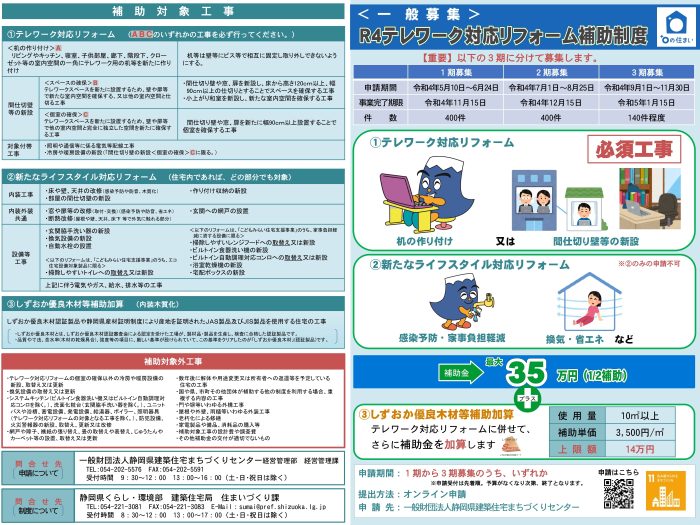 今年も静岡県よりテレワークに関するリフォーム工事への補助金事業が始まりました。