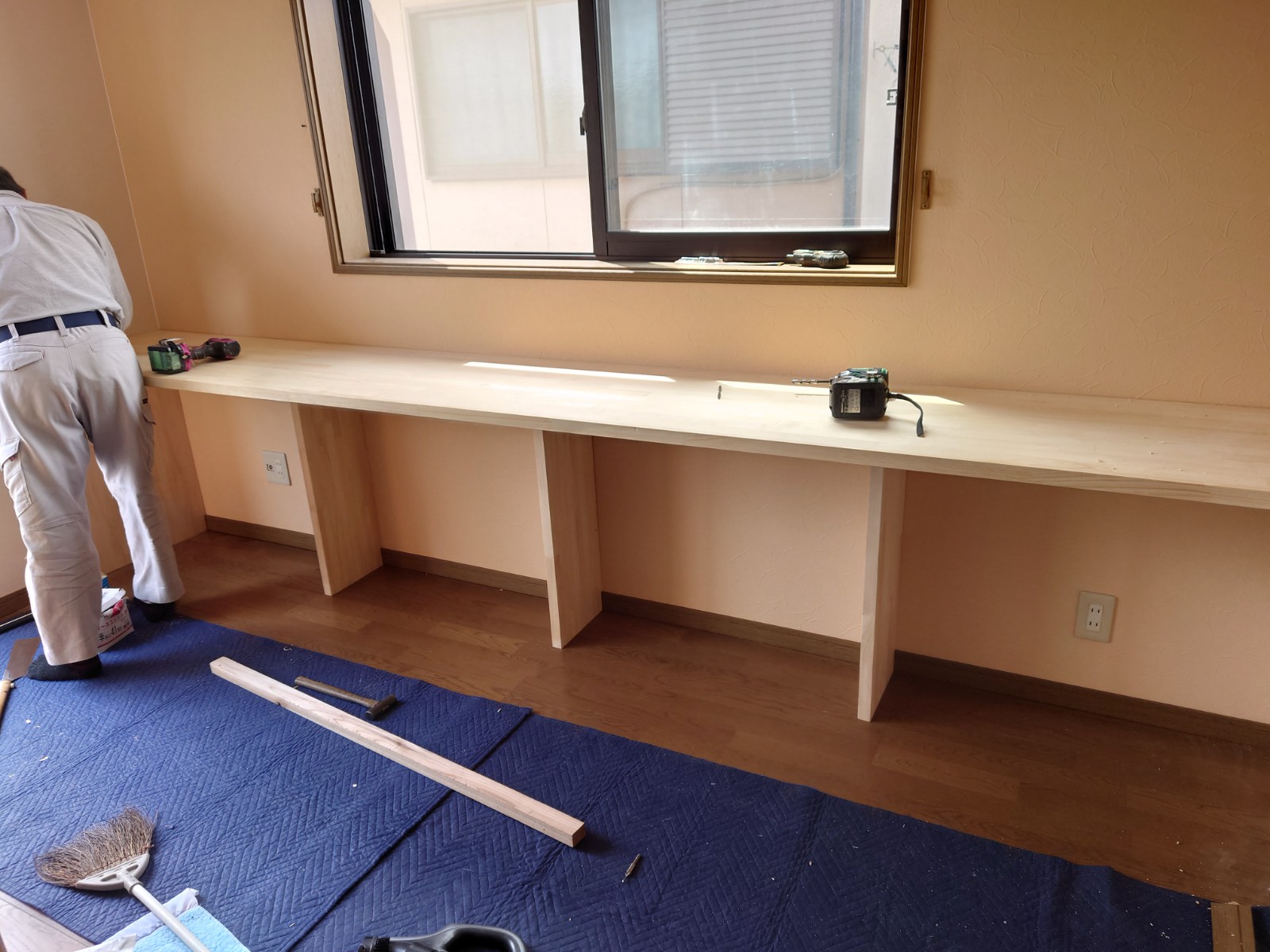 テレワークする机を壁に固定して作り付けすることが補助を受けるのに必須工事であります。