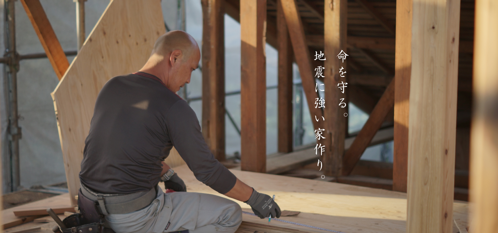 木は鉄に比べ、重さあたりの引っ張り強度 で約 3 倍、曲げ強度で 16 倍もの強さがあ ります。地震の振動エネルギーは建物の重 さに比例して大きくなるので、軽さ、強度 で優る木の柱と梁で骨格を作り上げた在来 軸組工法は地震国日本に最も適した住宅と いえます。