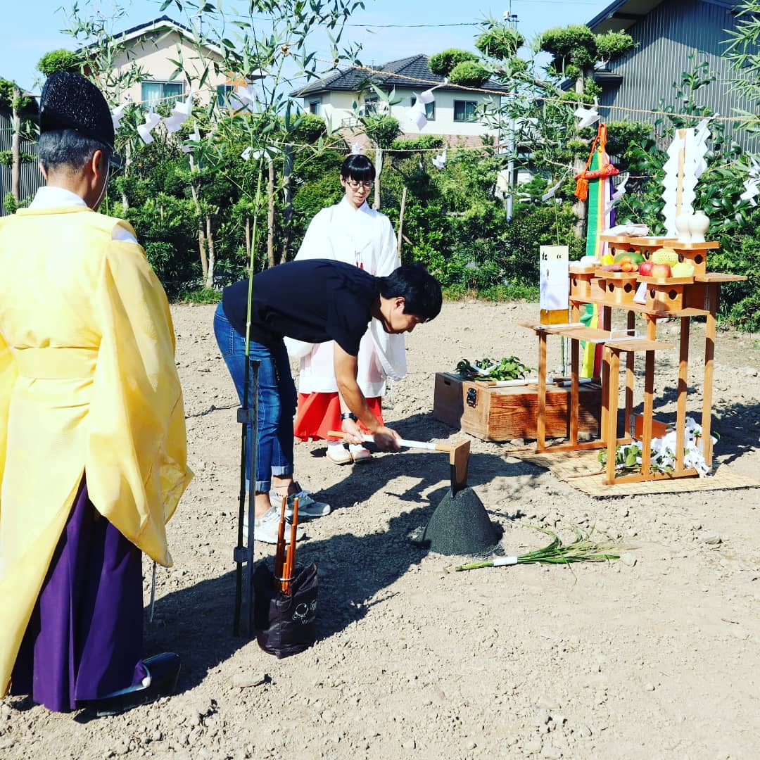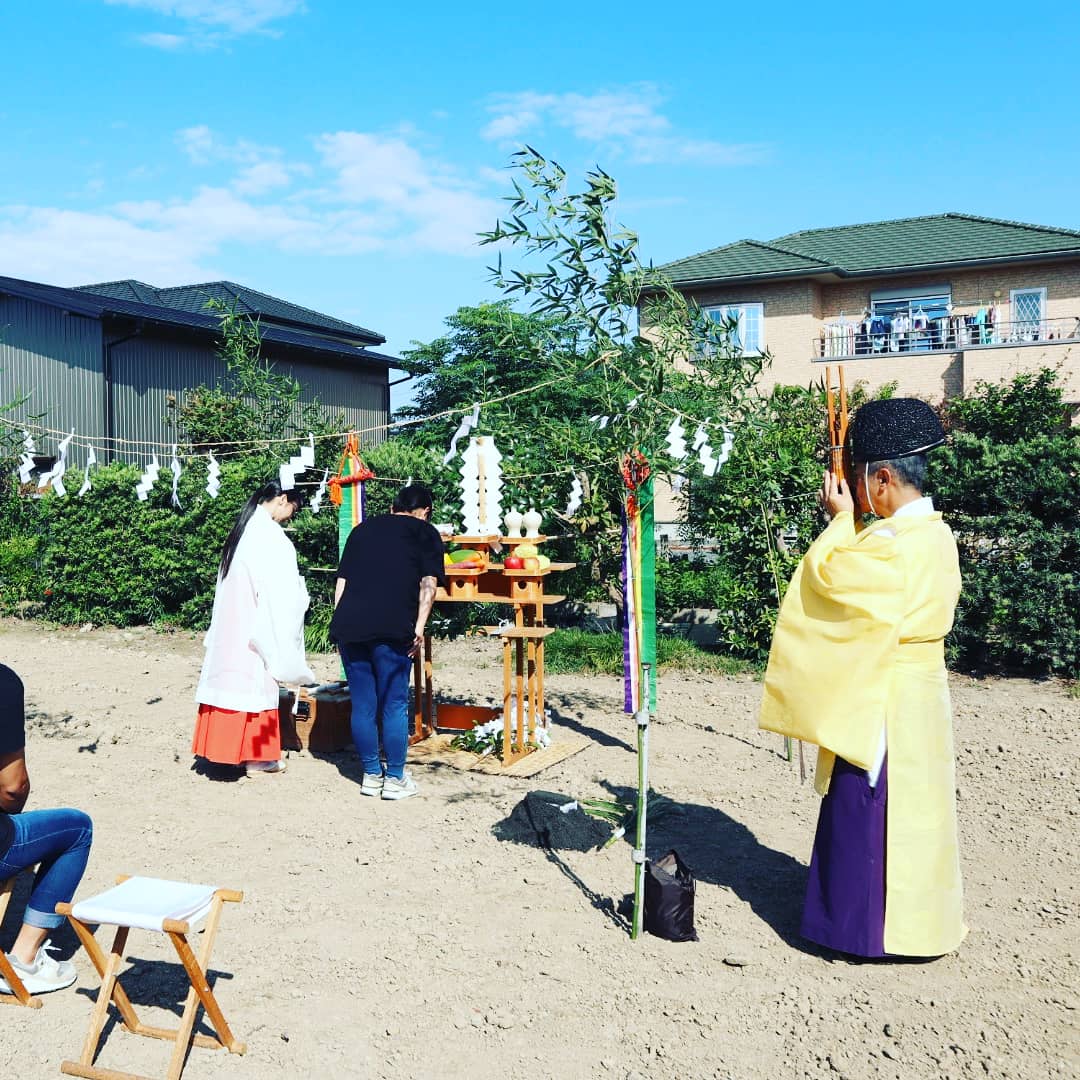 すばらしい秋晴れの下 K様邸新築工事の地鎮祭を行いました。