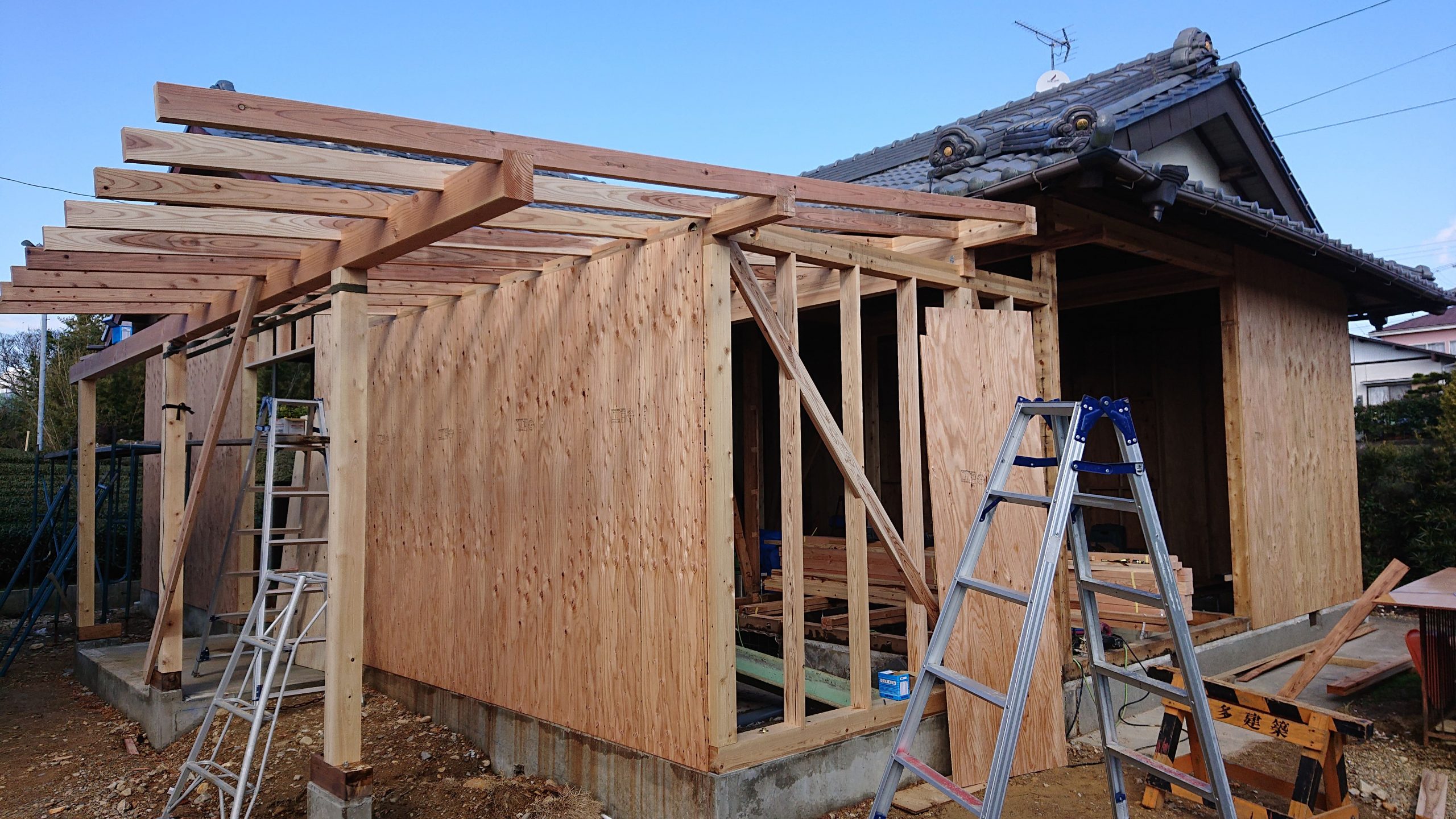 屋根・柱・梁・基礎部分を残し使えるものは使い、必要な部分には柱や梁を入れ、耐震補強も同時にしました。