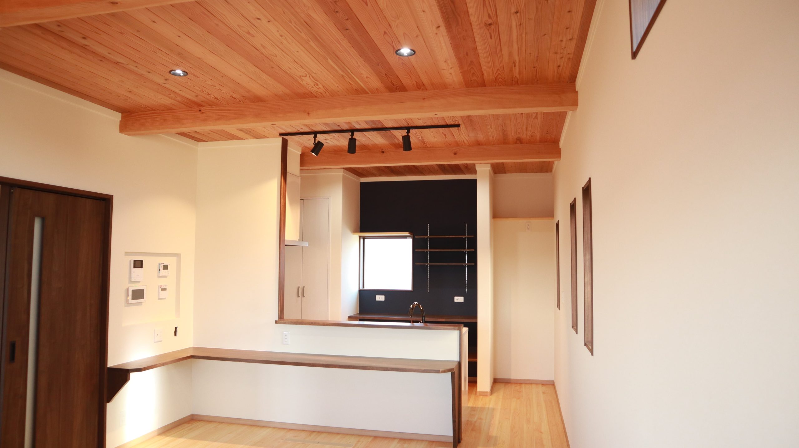↑ LDKの天井を杉板で仕上げました。 木がある生活っておしゃれですよ。