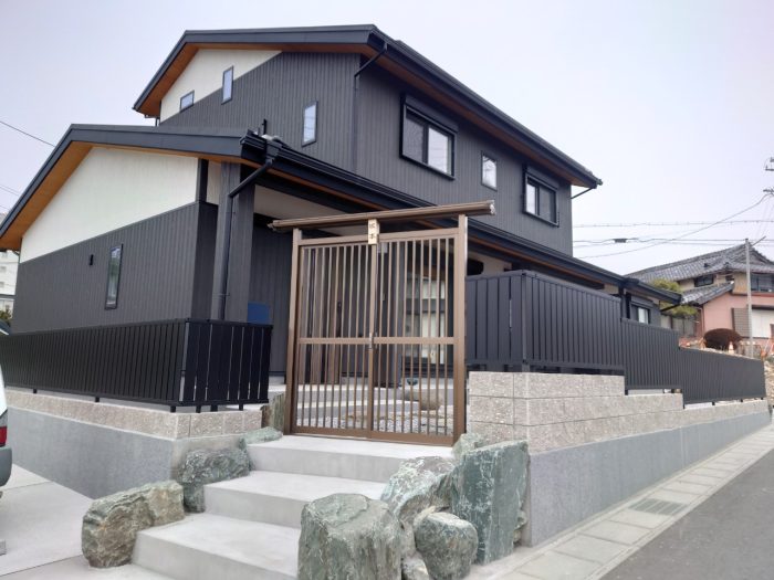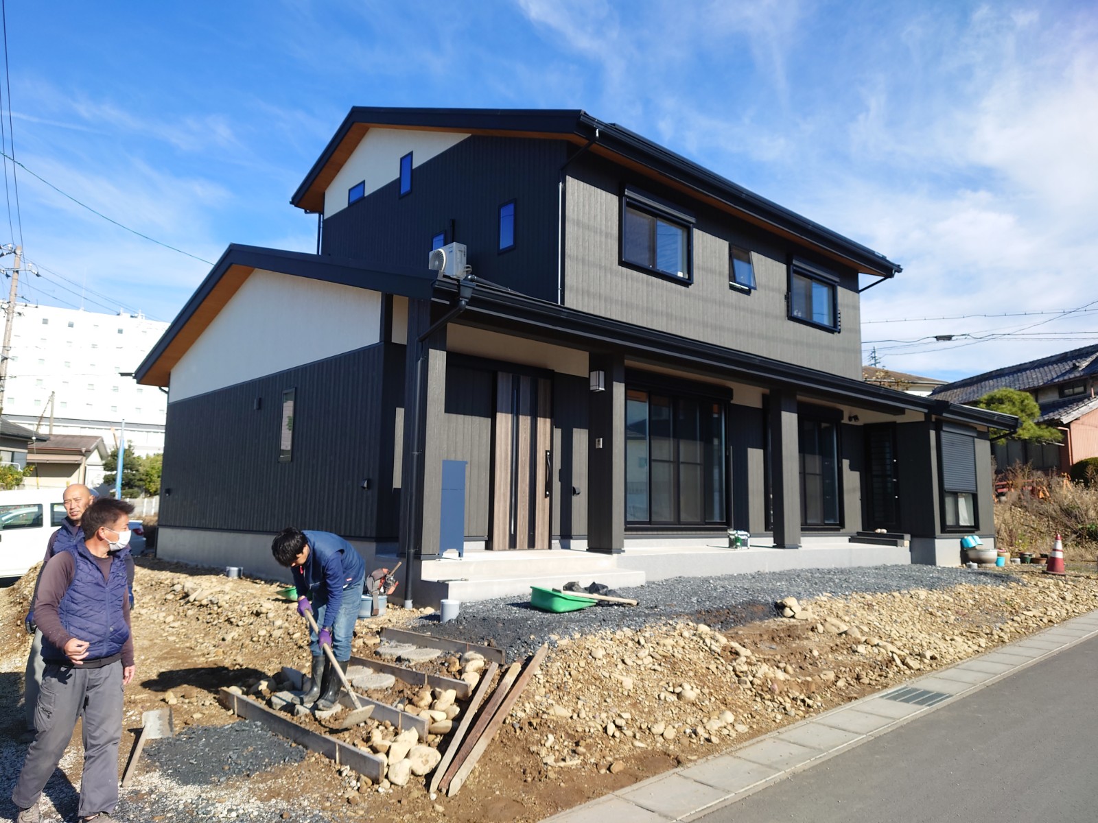 S 様邸エクステリア工事 S 様邸 袋井市高尾新築で建てさせて頂いたS様邸のエクステリア工事です。↑ 施工前↑ 駐車場の整地を行いコンクリートで土間打設https://test.nagata-k.net/wp-content/uploads/2023/01/outputcompress-video-online.com-1.mp4↑ 施工完了しました。 ゆったりな下り坂に隣接していることもあり 土止めを兼ね境界部分も段々 に変化させた仕上げに。玄関へのアプローチの両袖に庭石を置くことで 門扉も含め落ち着いた和風な仕上がりになります。※基礎工事~エクステリアや境界工事も自社施工をしております。 金額に合わせた施工方法をご提案させていただきます。