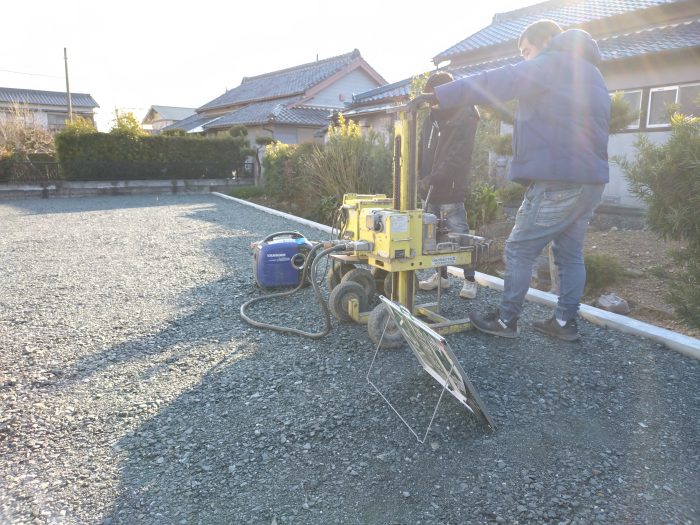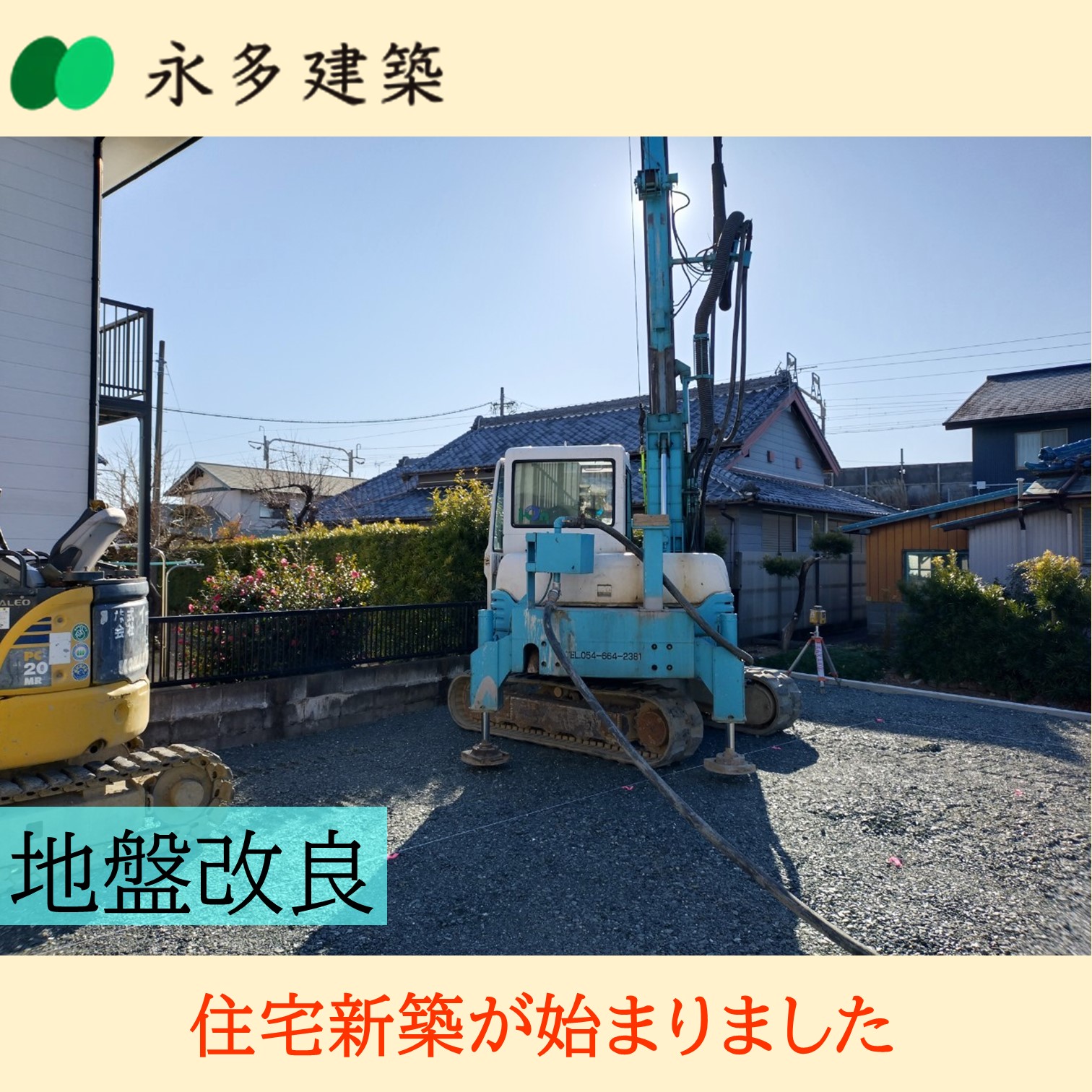 S 様邸地盤調査・改良工事 S 様邸 袋井市新池新築住宅が始まりました。 まずは地盤調査を行います。調査結果に応じて地盤改良を行ないます。地盤や基礎は、建物を支えるとても重要な部分です。ですから永多建築は基礎工事も自社施工(一体打ちの基礎)しています。現場をお見せすることもできます。ご関心があれば遠慮なくお問合せください。◈新築・リフォームを検討中の方◈建築中の現場の見学をご希望の方◈建築業界で働きたい方ぜひ永多建築までご連絡ください