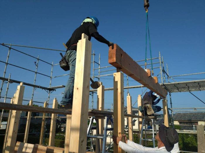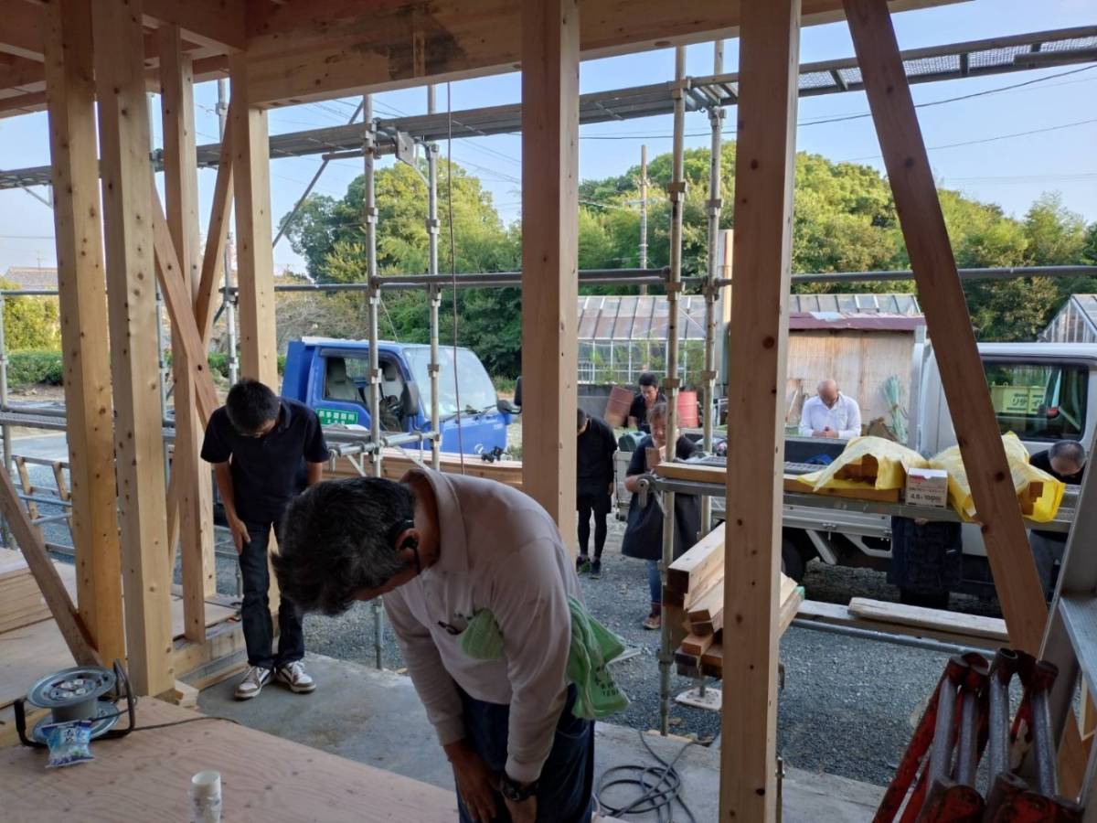 T様邸 新築工事 上棟 T 様邸新築工事 袋井市岡崎8月末の台風10号が無くなるのを1週間待って新築工事上棟式を行いました。9月でもまだまだ夏日が続きます。 体に気を付けてチームプレイで乗り切りました。無事上棟でき、お客様も初めての家づくりにとても感動していただきました。https://test.nagata-k.net/wp-content/uploads/2024/09/1725890757023.mp4↑ 建て方動画↑ 建て方風景↑ 柱はオール4寸・桧です。一生に一度の住宅づくりは地元の大工に頼む事を推薦します! そのメリットは数知れず。。。お問合せは こちらに 090-8735-9360 三浦まで